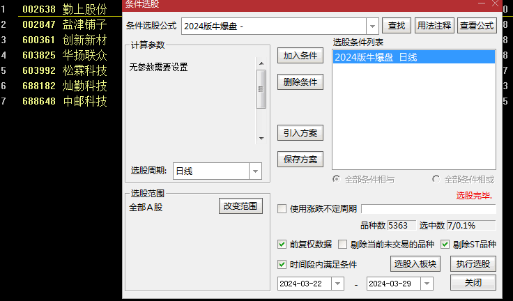 今选〖2024版牛爆盘〗副图/选股指标 选股少而精 支持2次开发 通达信 源码