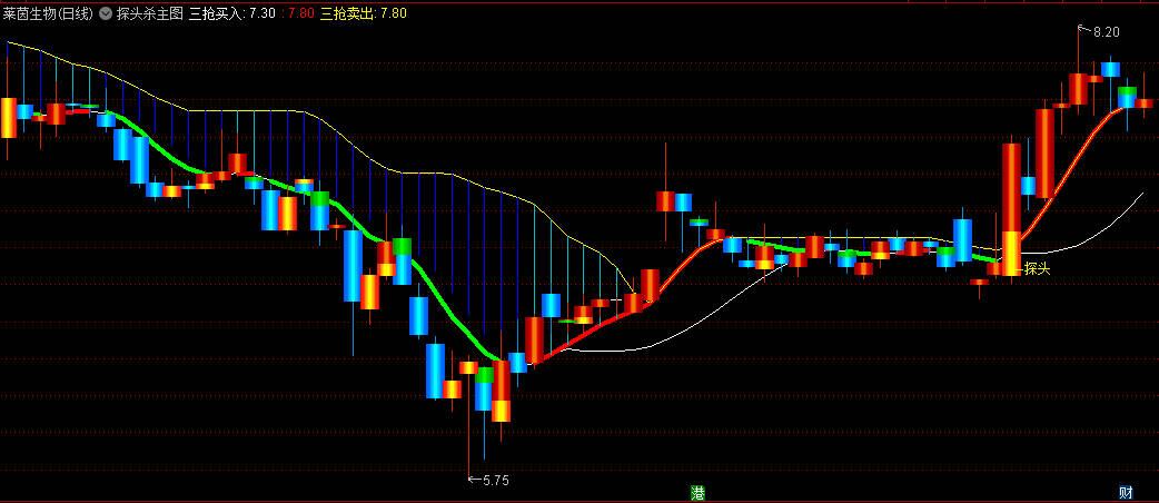 注意:指标是结合行情判断个股最佳的操作方法。如果能够灵活的运用好指标,对于判断个股是有很大帮助的。探头杀就是一个波段操作的指标。提供买入和卖出点位提示,用于判别个股现在是否处在压力和支撑位之上。同时能够寻找出起爆点。