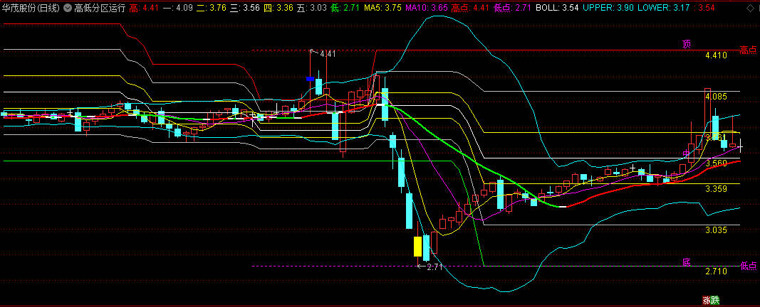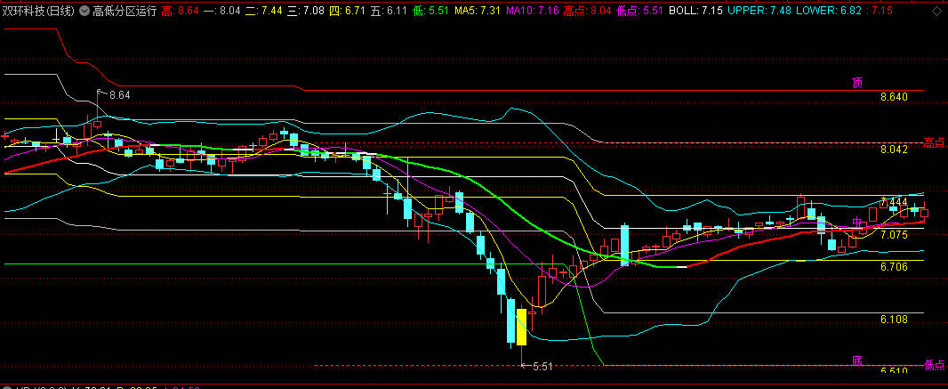 通达信高低分区运行主图指标无未来函数,根据股价的高低划分了不同的运行区间,并能及时提示涨跌趋势的变化。