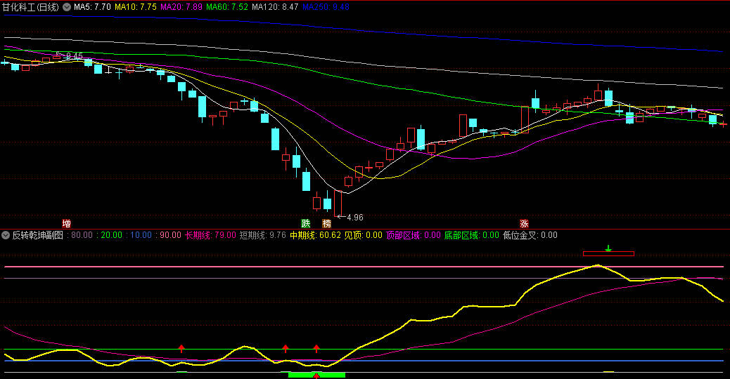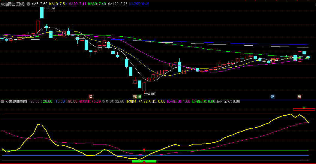 反转乾坤副图指标,可以分时做T,可以日线看趋势决定去留的指标.