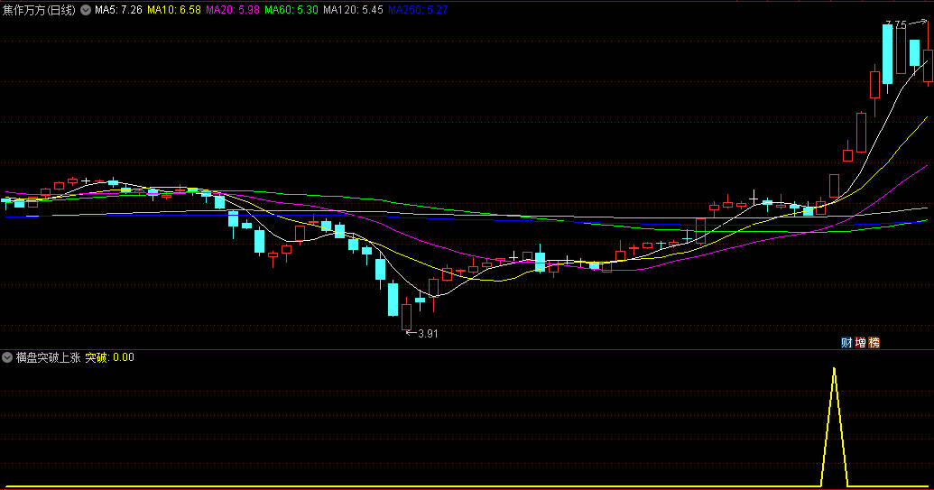 在明白了这些道理之后,我们就可以利用横盘突破上涨副图指标来选股了。