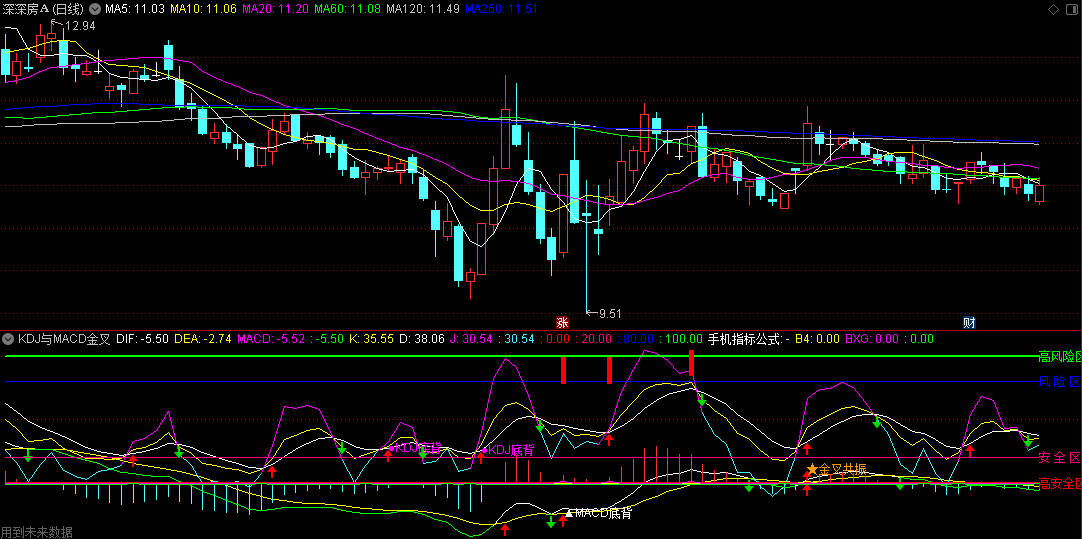 因此,投资者在观察通达信KDJ与MACD金叉共振绝杀副图指标时,应重点关注两者同时金叉的共振点。