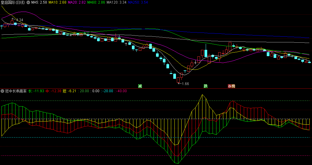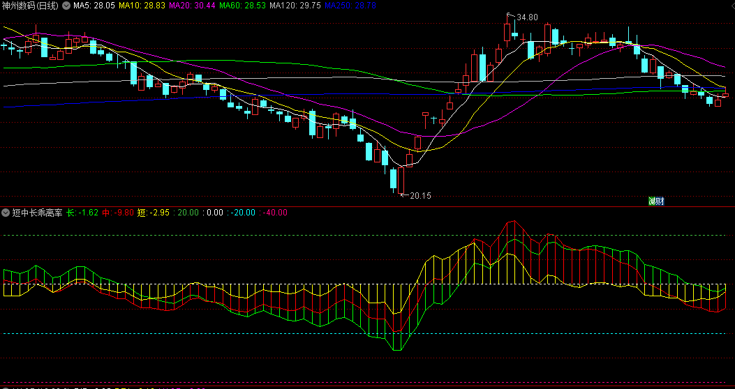 中、长乖离高于60,进入严重风险区,只要打开涨停板,需获利减仓。