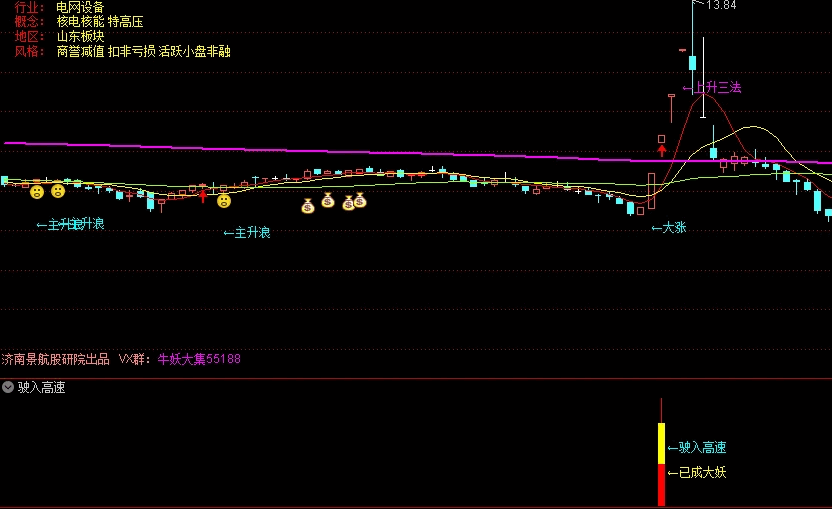 “坐等抬轿”完整版指标,作者予以新的命名:【驶入高速】指标。