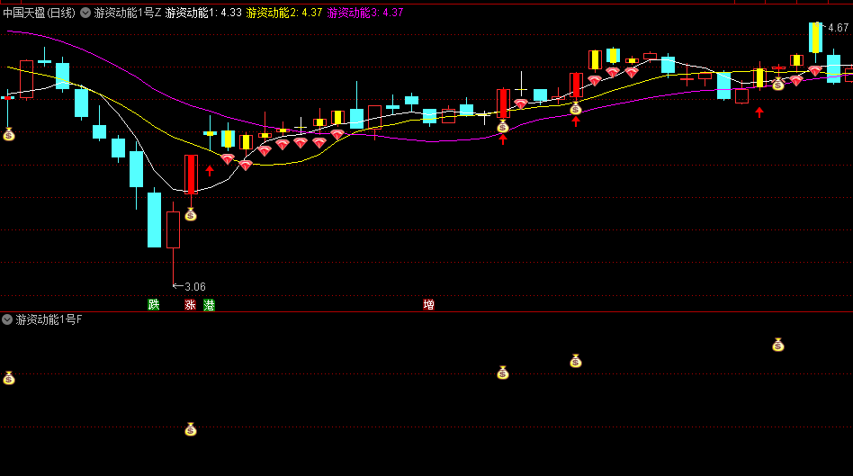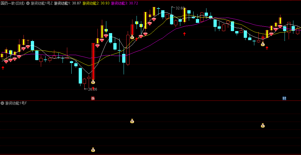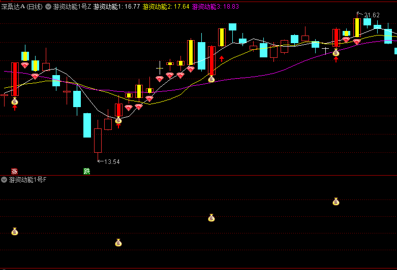 【游资动能1号】套装指标,分为1个主图+1个副图+1个选股;