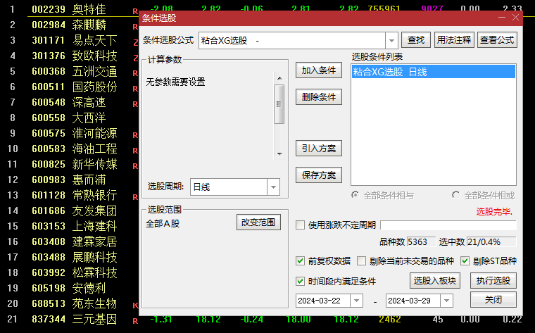 含了两个选股公式,突破XG选股和粘合XG选股,无未来函数。