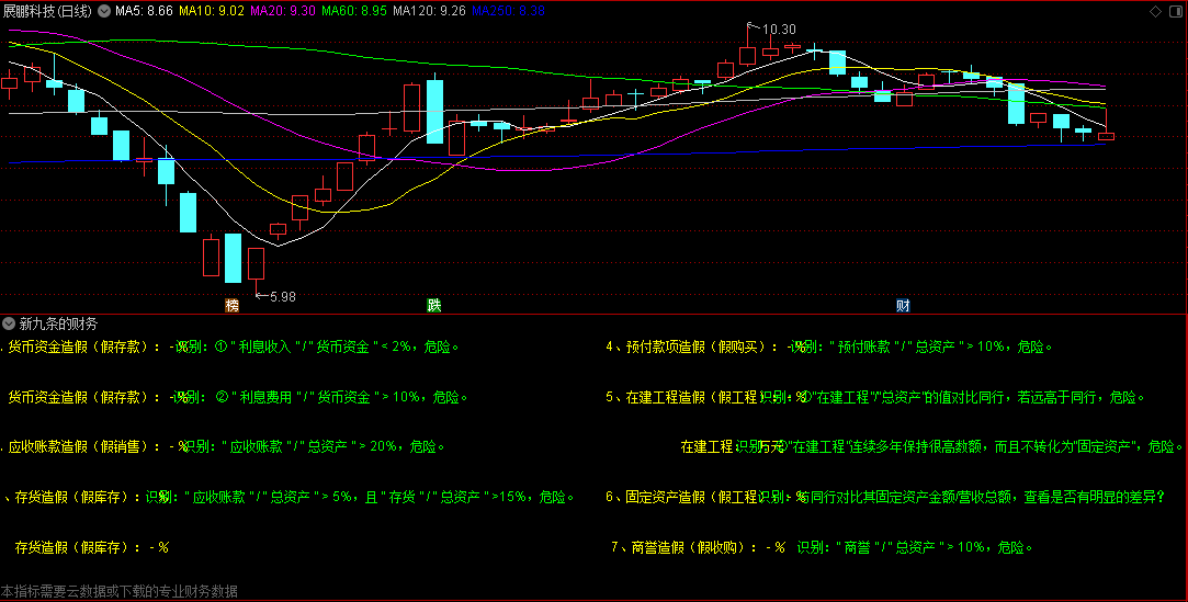 〖新九条的财务造假〗副图指标 一眼识别各类财务数据 数值对比 避免踩坑 通达信 源码