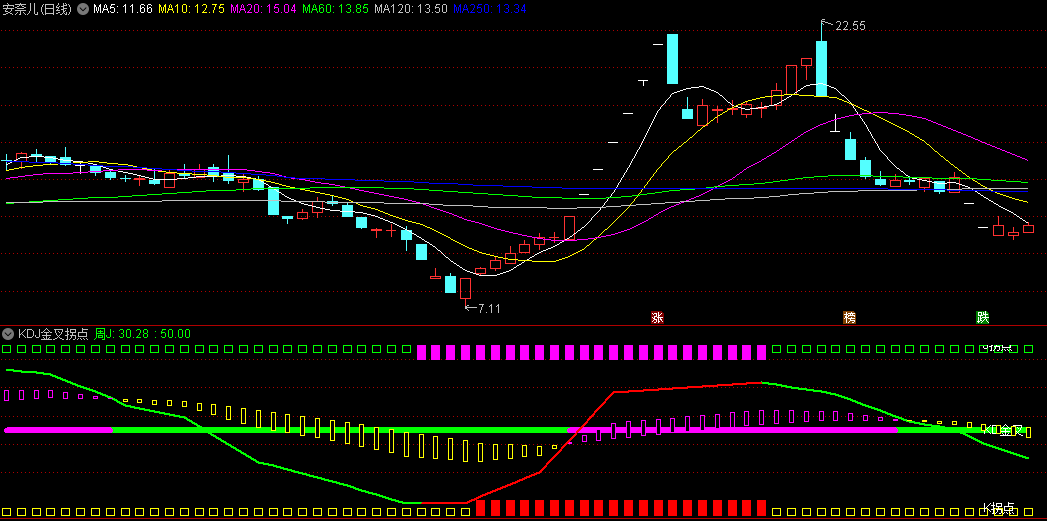 其次,J拐点是指标中的另一个关键信号。它表示J线在底部出现拐点,即J线从下跌趋势转为上升趋势的转折点。