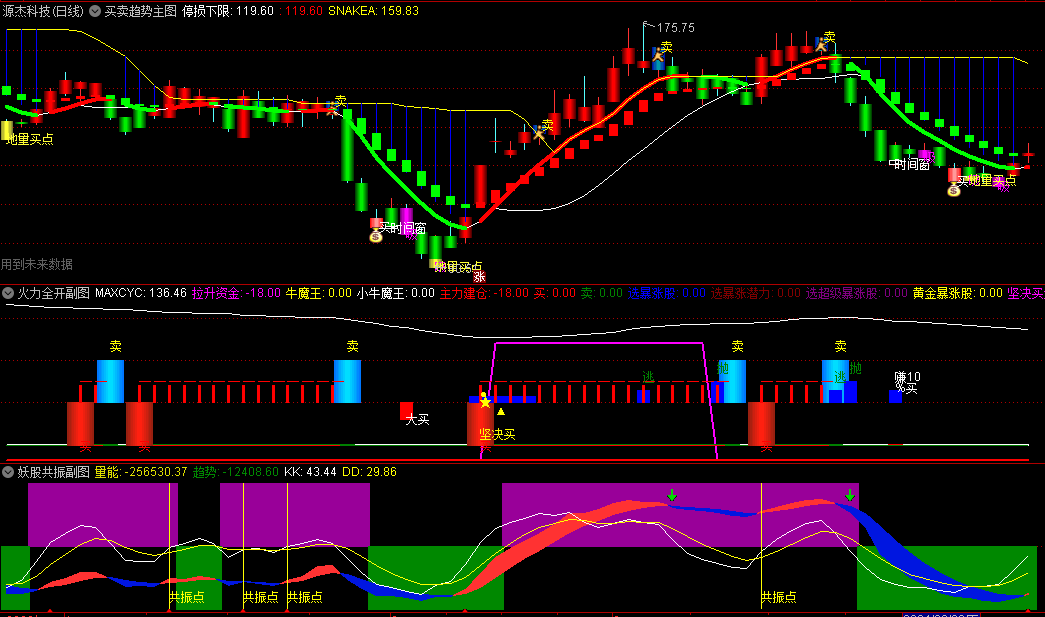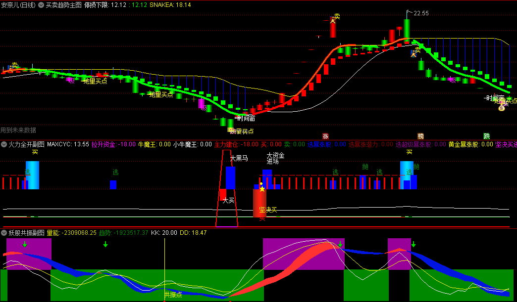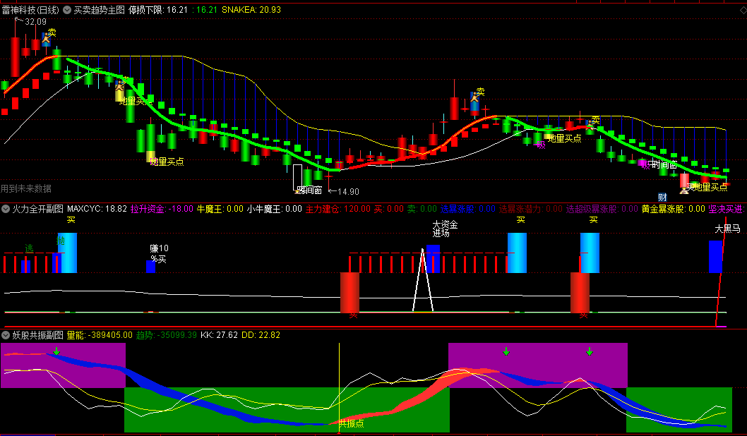 当妖股共振和火力全开两个指标都给出共振买点信号时,这通常意味着买入的机会更加明确和安全。