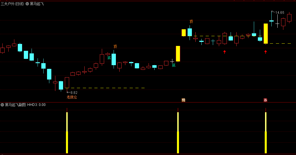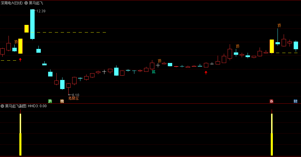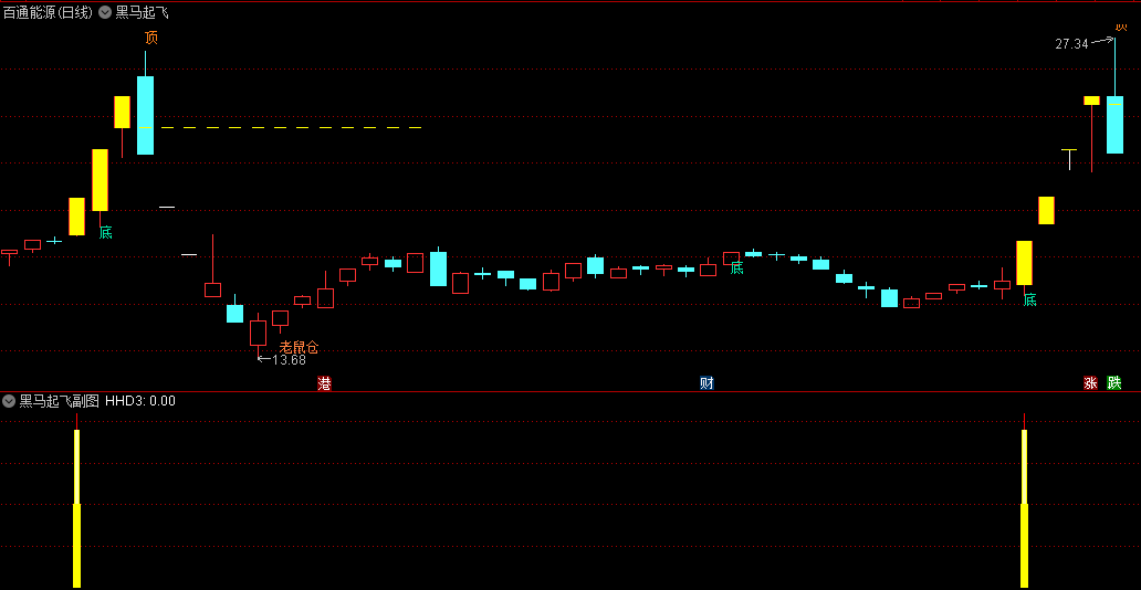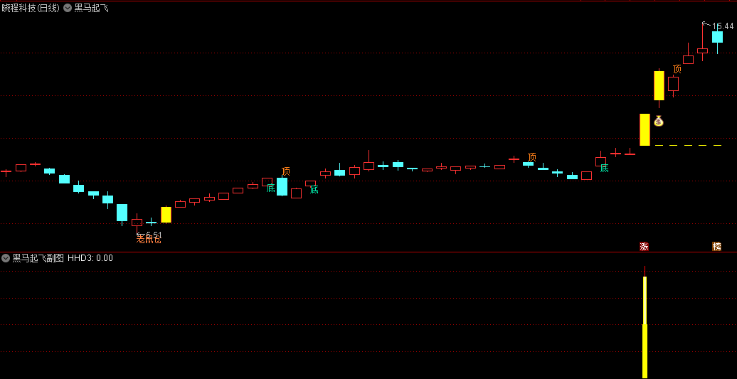 黑马突破起飞主图指标:在主图上,黑马突破起飞指标通过特定的算法和公式,能够精准地标识出黑马股的潜在突破点。这些突破点通常伴随着成交量的放大和股价的强势上涨,是投资者进场布局的绝佳时机。同时,主图指标还能清晰地显示出股价的趋势和波动情况,帮助投资者更好地把握市场节奏。