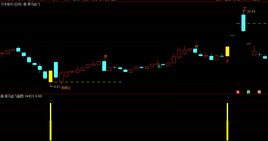 黑马突破起飞副图指标:副图指标则是对主图指标的补充和辅助。图形比较简单,出现上白下黄的柱子时,就是突破起飞的信号!帮助投资者更加精准地判断市场的买点。此外,副图指标还可以与其他技术指标进行叠加使用,以提高分析的准确性和可靠性。