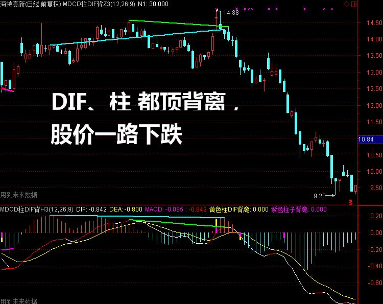 3、股价出现杀跌走势:按照天量见顶和MACD背离提示卖点的逻辑,股价会出现显著的杀跌走势。价格跌幅较大,幅度可达50%。