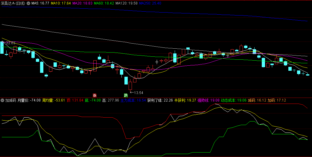 〖加减码〗副图指标 电脑手机兼容版 根据动态成本来加码或减码 通达信 源码