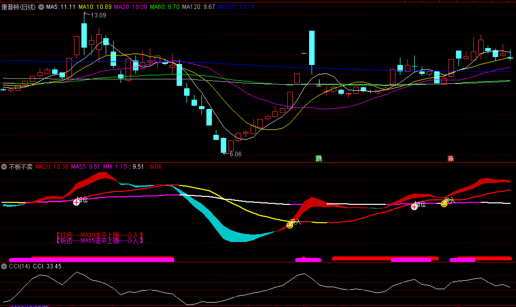 今选〖不板不卖〗副图/选股指标 红色带状线是主升浪 捕捉强势上涨机会 通达信 源码