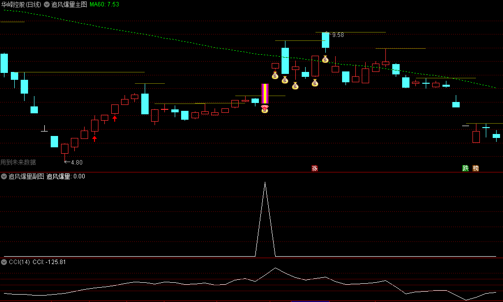 按照以上条件制作【追风爆量】指标。逻辑主要以突破的形态为主,