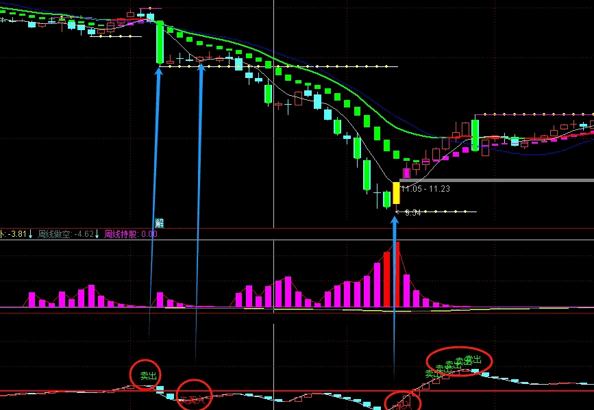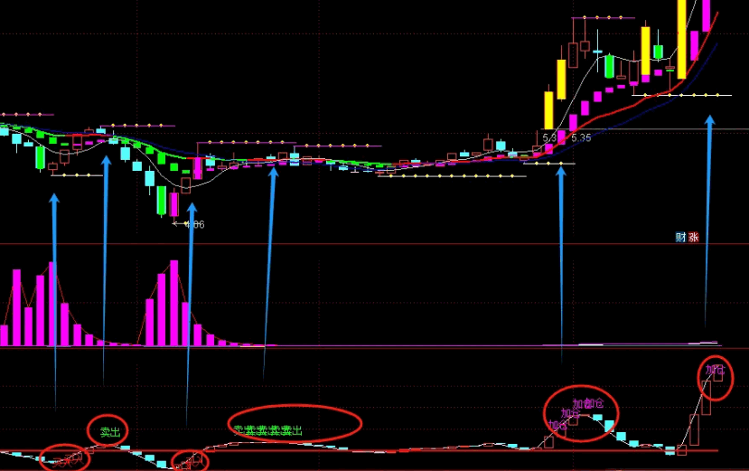 4、指标使用中趋势投资者可以遵循低买高卖原则,按指标提示操作即可,龙头选手受情绪影响较大,木一天受分时下杀低位卖出,但低位承接持续增强导致股价反复拉高,可以根据指标信号进行高位追涨或打板确认动作,防止卖飞,信号作为低卖高买弱转强的一种补偿。