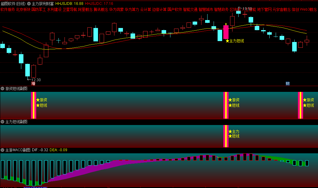 揭秘通达信主力游资短线盈利宝典全套指标,其中包含了主力获利财富主图、游资短线副图、游资短线选股、主力短线副图、主力短线选股、主游MACD副图六个指标。