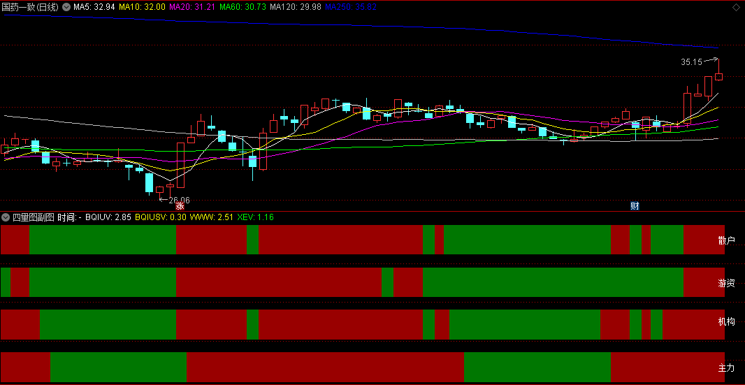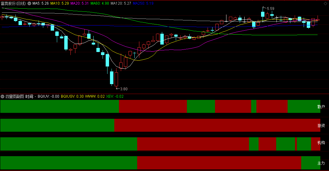 四量齐红而且股价在60日均线附近,上涨概率极大。