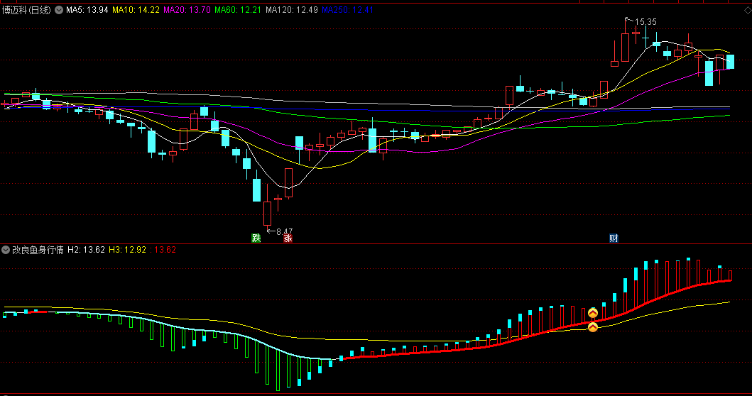 本人完美改良---鱼身行情,信号就出在启动点,叠加热点使用。无未来函数。