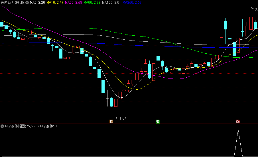 要点:上涨时倍量涨停,下跌时缩量调整,期间不能超过5天,再上涨,用涨停板来形成N字形态。
