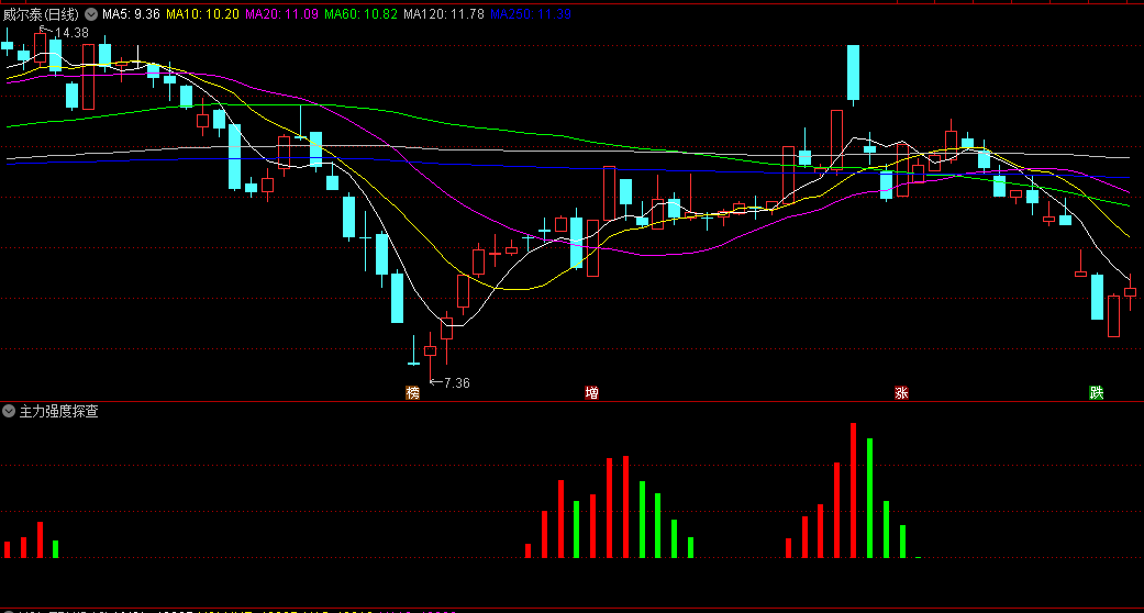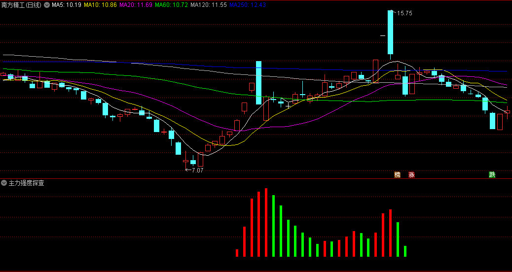 〖主力强度探查〗副图指标 探查主力的强度 与牛股为伍 无未来 通达信 源码