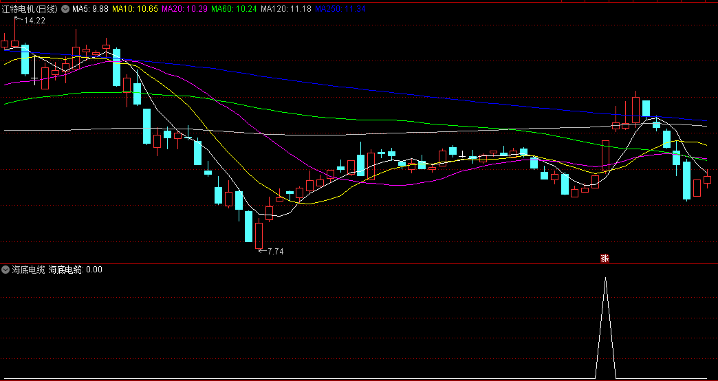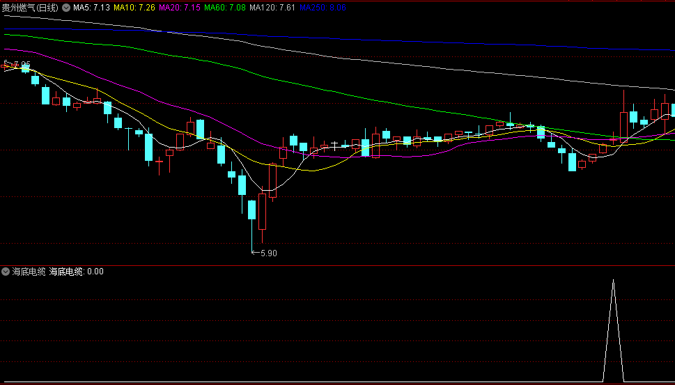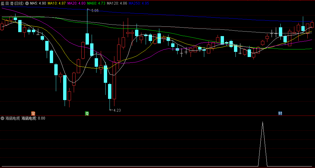 在副图显示中,【海底电缆】指标能够清晰地展示市场的底部反弹趋势,为投资者提供直观的参考。