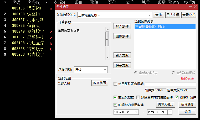 选股指标方面,特别值得一提的是尾盘选股功能。