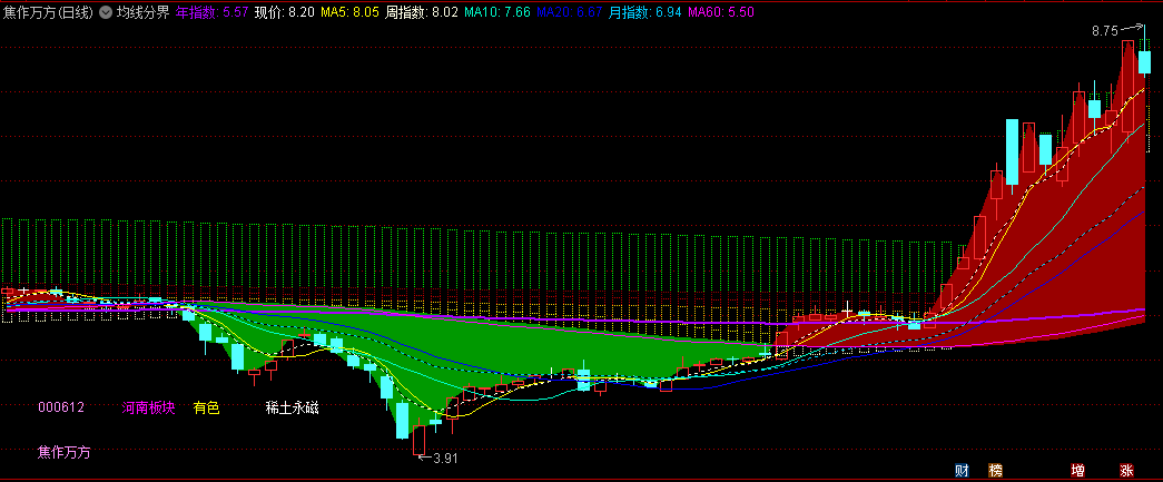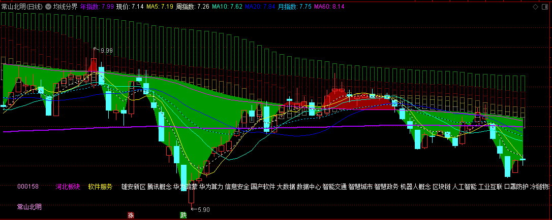 打开主图指标(MA均线,EMA均线,BBI多空均线,GMMA顾比均线)经过学习,结合个人实战经验,简单的优化后,做了这个指标推荐给大家。