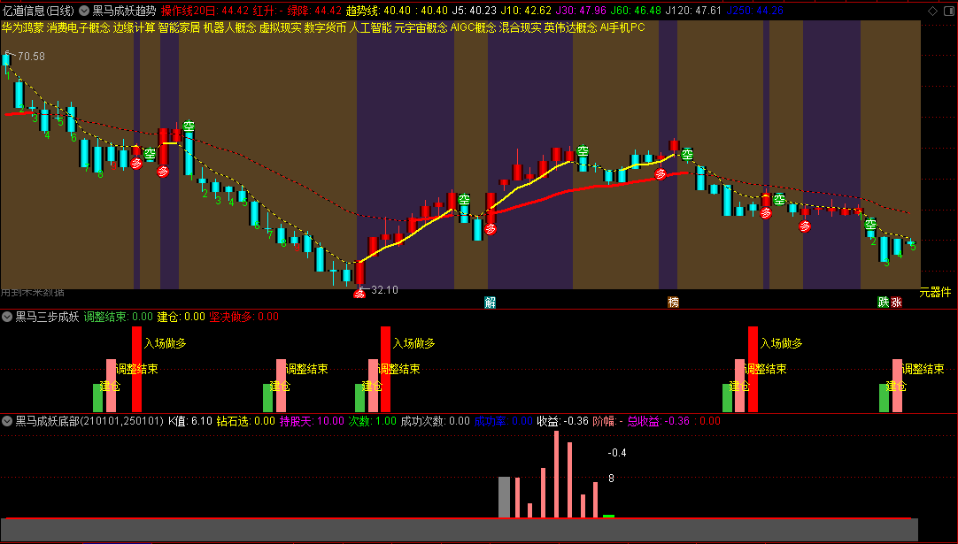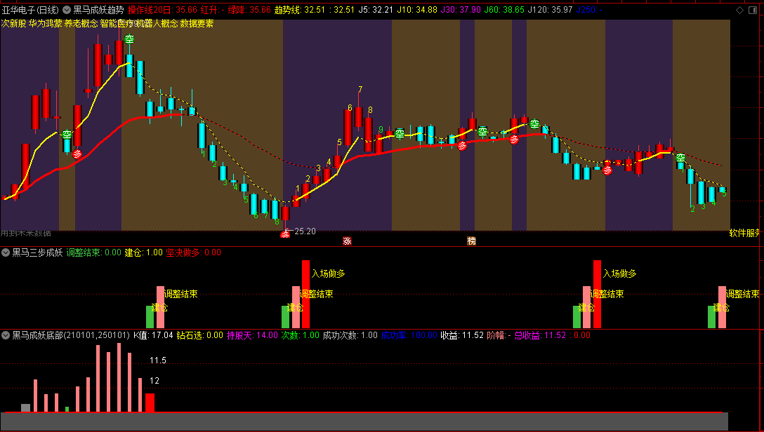 其次,黑马成妖底部副图指标则侧重于资金、成交量与趋势的综合判断。当模型出现灰色柱状时,提醒投资者关注买入机会;而红色柱状出现时,则意味着应考虑卖出。这一指标有助于投资者在底部区域捕捉潜在的黑马股票。