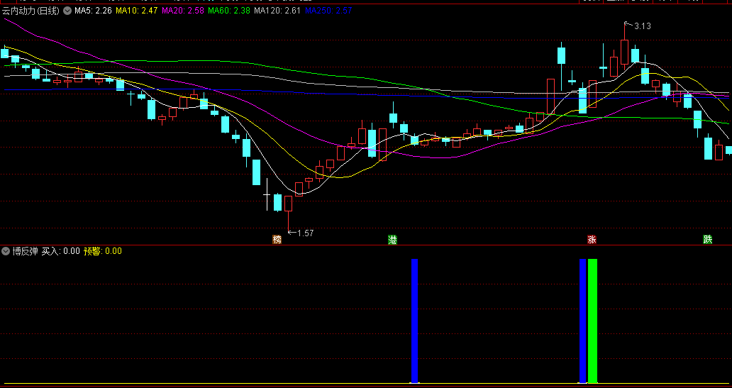 策略分为预警和买入两个部分,预警出现之后暂时不要动手,可以持续观察等待资金企稳再介入,买入这是比较激进的右侧策略出现后短期内就要在出现k线处选择介入点进行参与,如果短期内先出预警再出买入的把握更大,比如600577我们跟踪一下,大家下载记得点个赞支持^_^