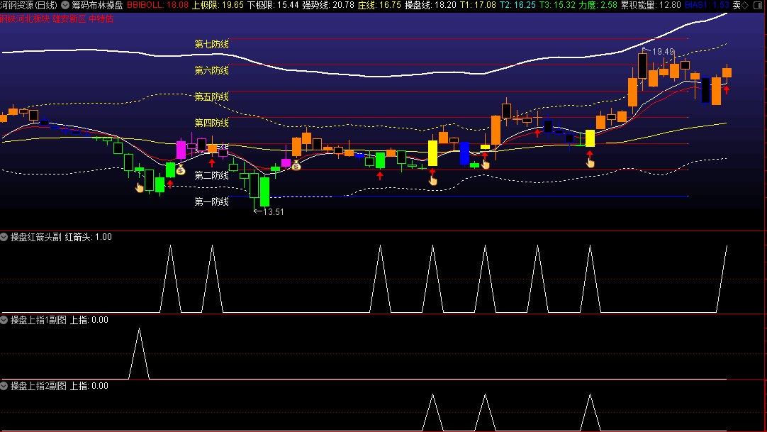 〖筹码布林操盘〗主图/副图/选指标 七道防线 操盘K线 变色k线 通达信 源码