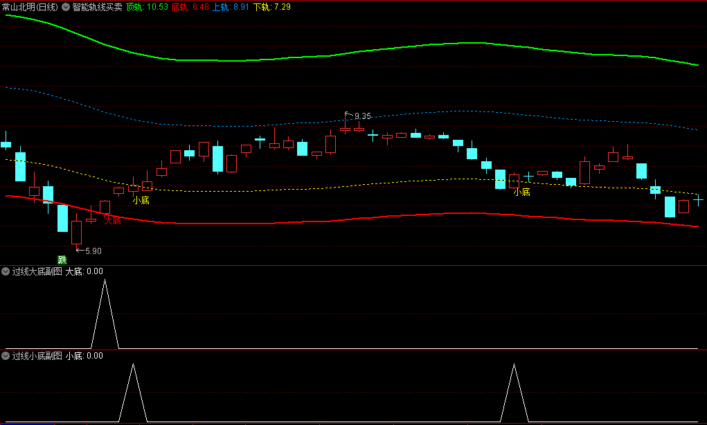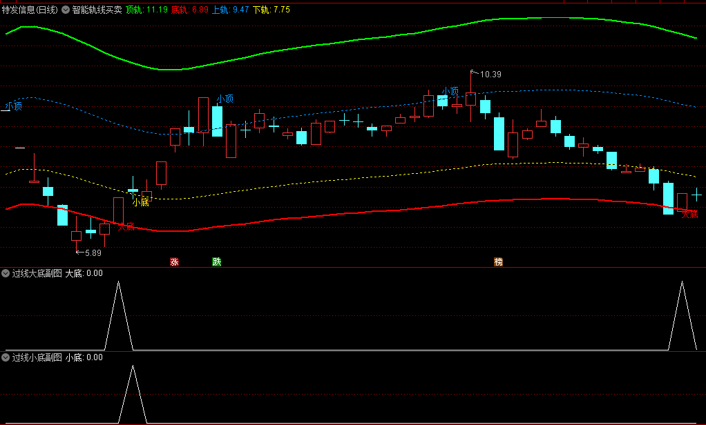 通达信智能轨线买卖主图/副图/选股指标,此指标独特地将股票价格划分为上轨、下轨、顶轨、底轨四大区域。