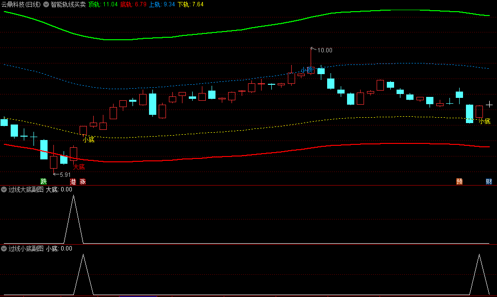 在K线动态变化的过程中,一旦触及特定的价格点,系统会即时触发小底、小顶、大顶、大底的文字提醒,使投资者能够迅速把握市场的变化。