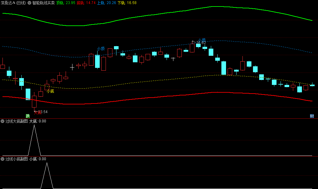 〖智能轨线买卖〗主图/副图/选股指标 分为四个区间 给出小底+小顶+大顶+大底的文字预警 通达信 源码