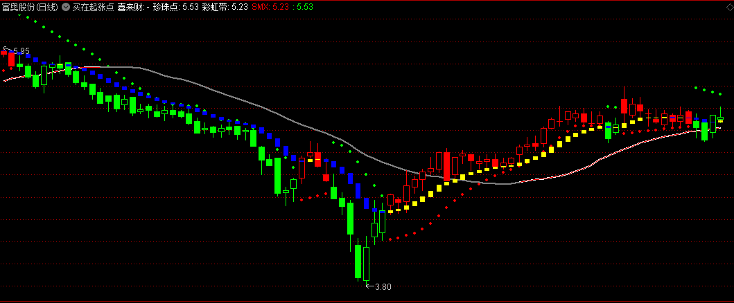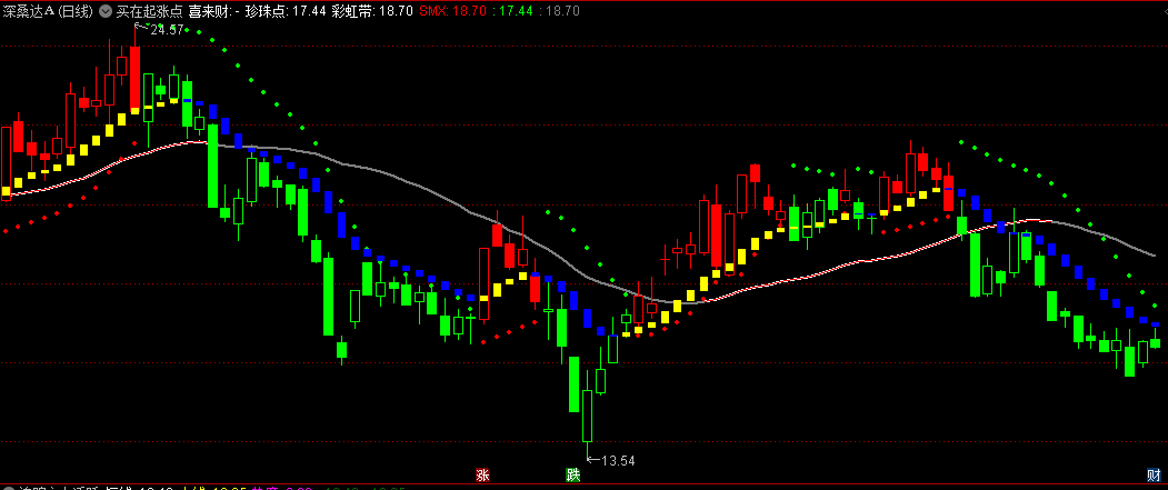 分享一个五一大礼 买在起涨点主图指标,红色K线出现,加上下方出现橙色小方块,是反弹开始。