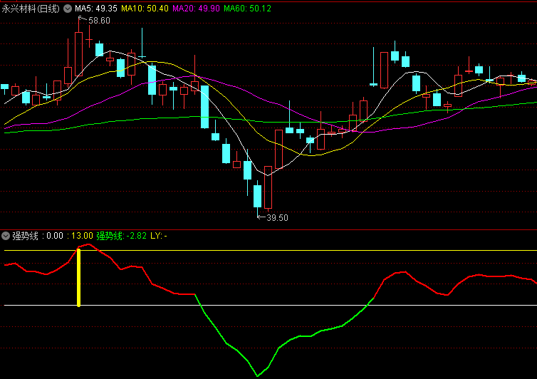 〖强势线〗副图指标 底部信号和顶部信号都挺准的 无未来 通达信 源码