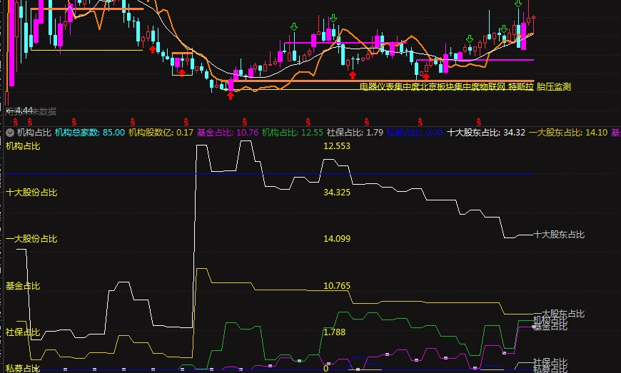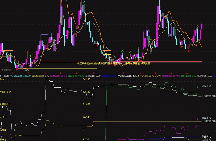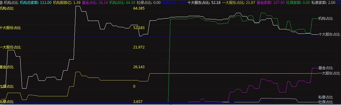 〖机构占比〗副图指标 能显示机构家数和机构占比的指标 无未来 通达信 源码