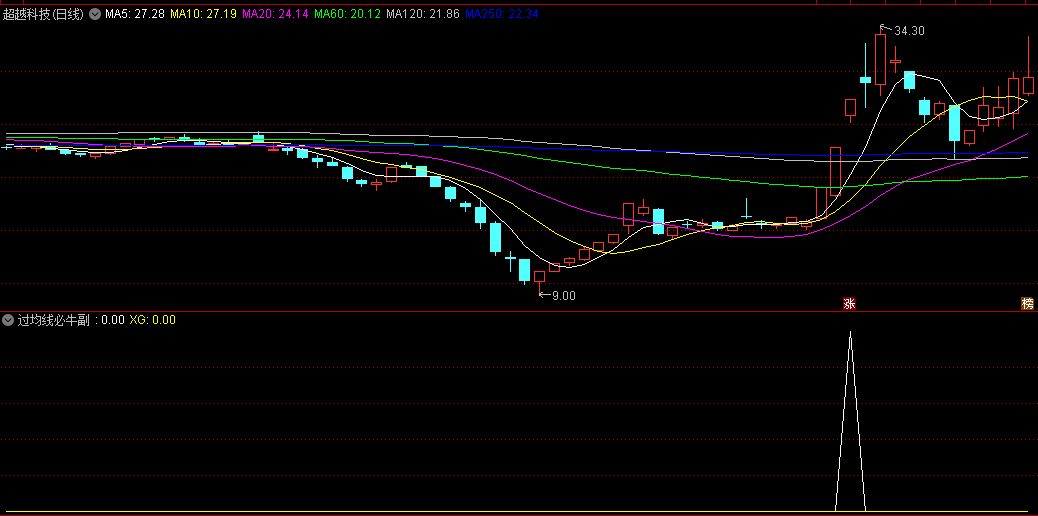 〖过均线必牛〗副图/选股指标 网络收集而来 出现明显突破发出信号 通达信 源码