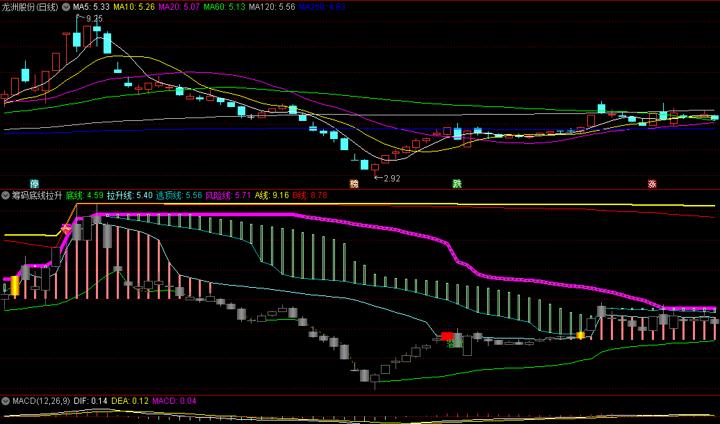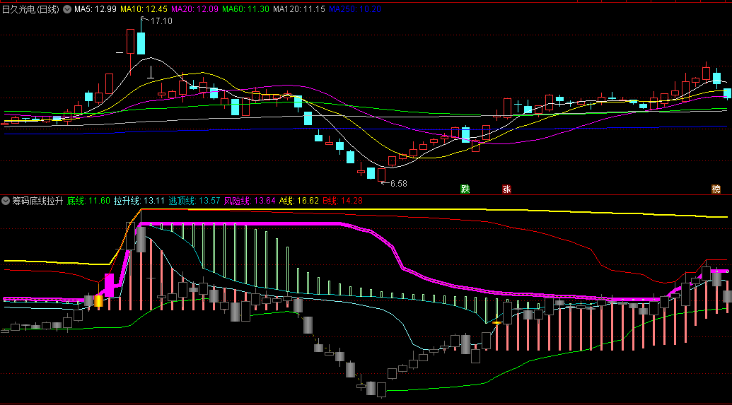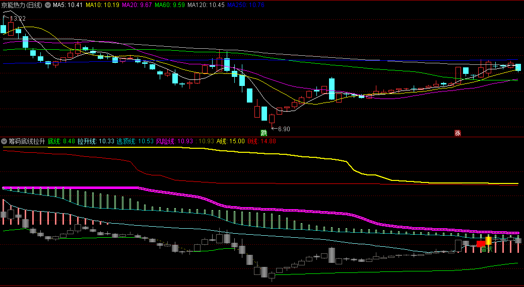 〖筹码底线拉升〗副图指标 套牢筹码 疯狂拉升 拉升阶级 通达信 源码
