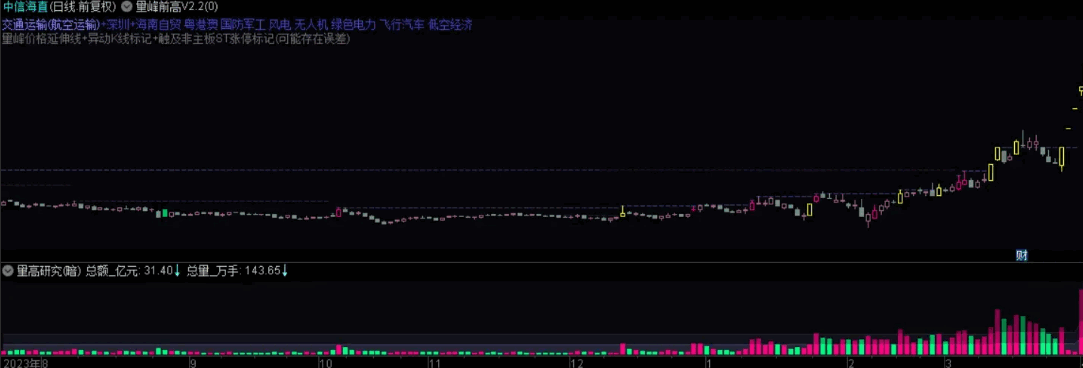 1、寻找符合成交量或成交额呈现阶段新高的点