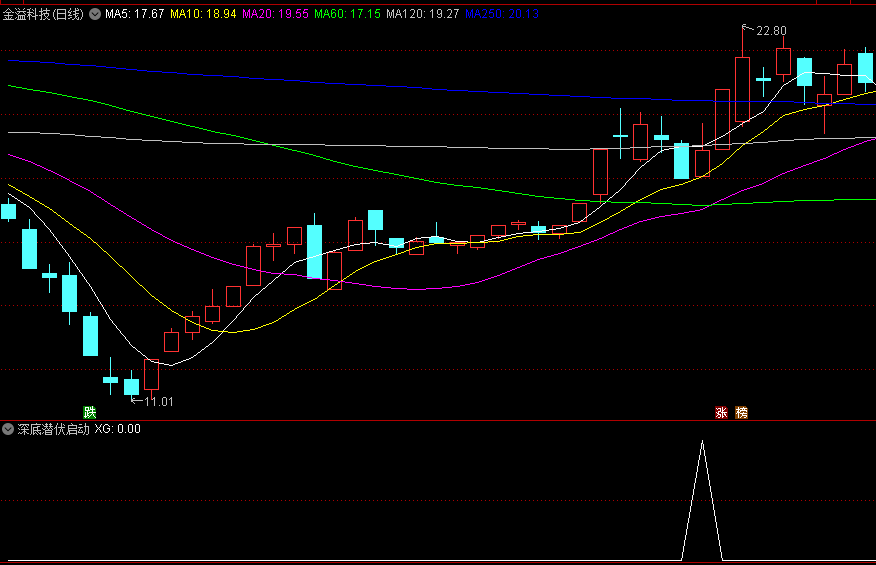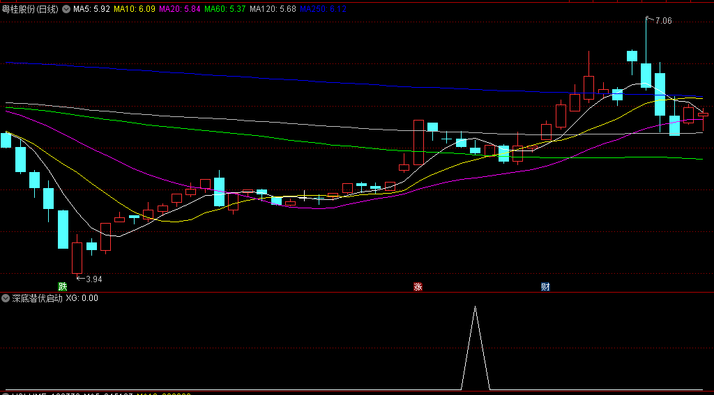 通达信深底潜伏启动副图/选股指标基于均线算法,以趋势变动特征抓反弹。