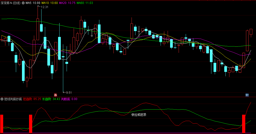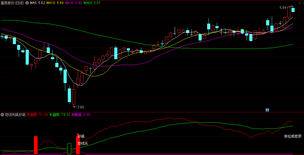 具体来说,当副图指标发出“抄底”信号时,我们可以先不急于买入,而是观察主图上的10日均线。
