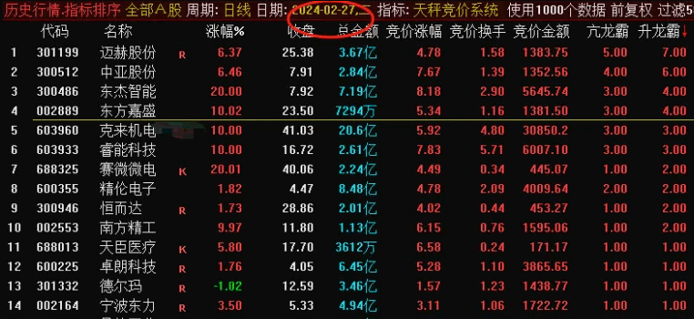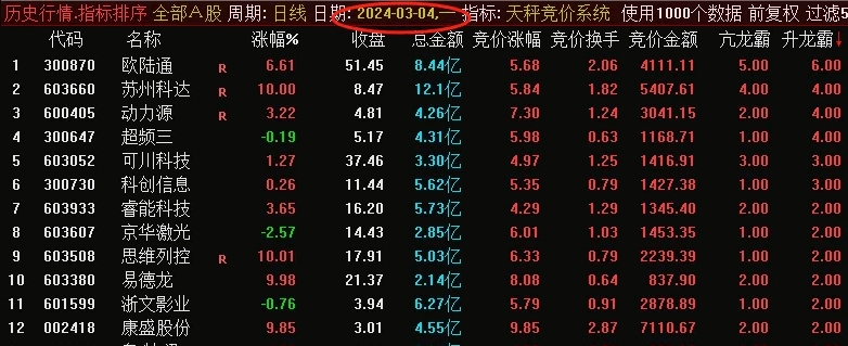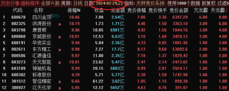 天秤竞价系统排序指标可以回测历史数据,排序界面如下: