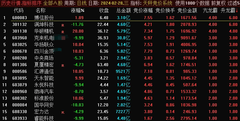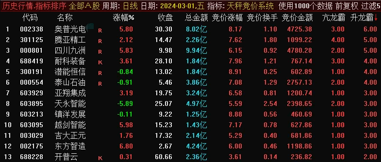 亢龙霸和升龙霸,从高到低看,高开超过5个点的放弃,或者盘中低吸,尽量选择5个点开盘价以下的;