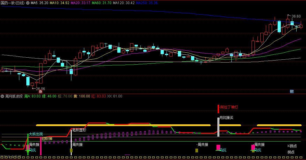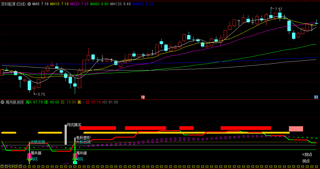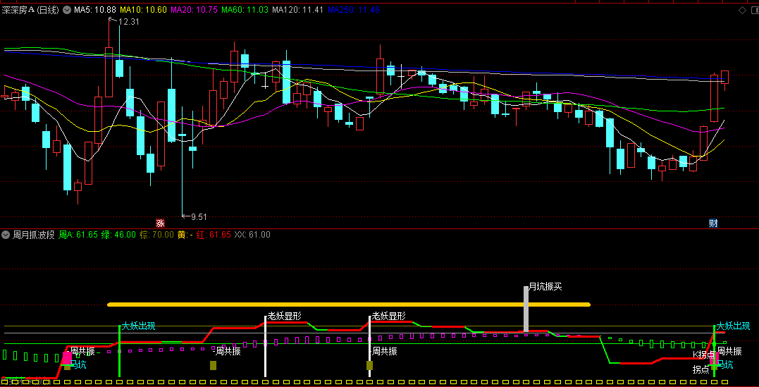 〖周月抓波段〗副图指标 有许多信号 可以继续优化 通达信 源码
