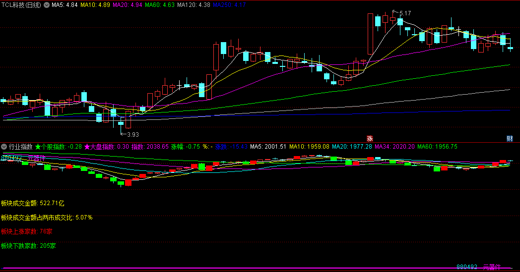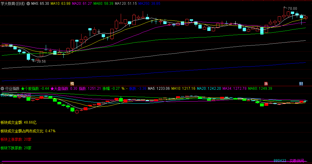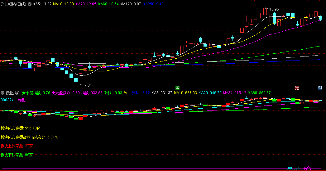 〖行业指数〗副图指标 如果行业指数走多头 个股也共振 则是机会 通达信 源码