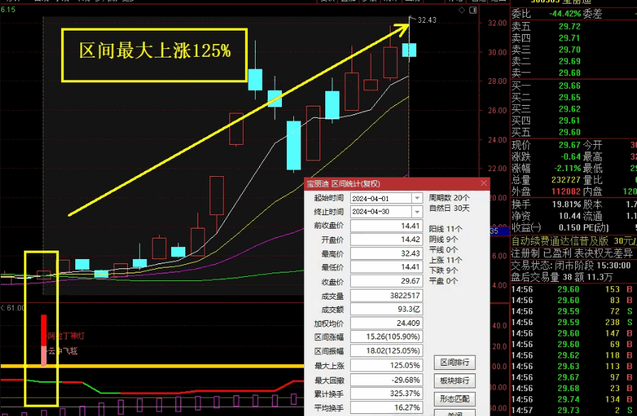 信号测试不多,3月4月两个月测试信号为44只,对于波段思路的用户来说数量够用了,出信号后,后面会有一波不错的拉升涨幅,信号仅供参考