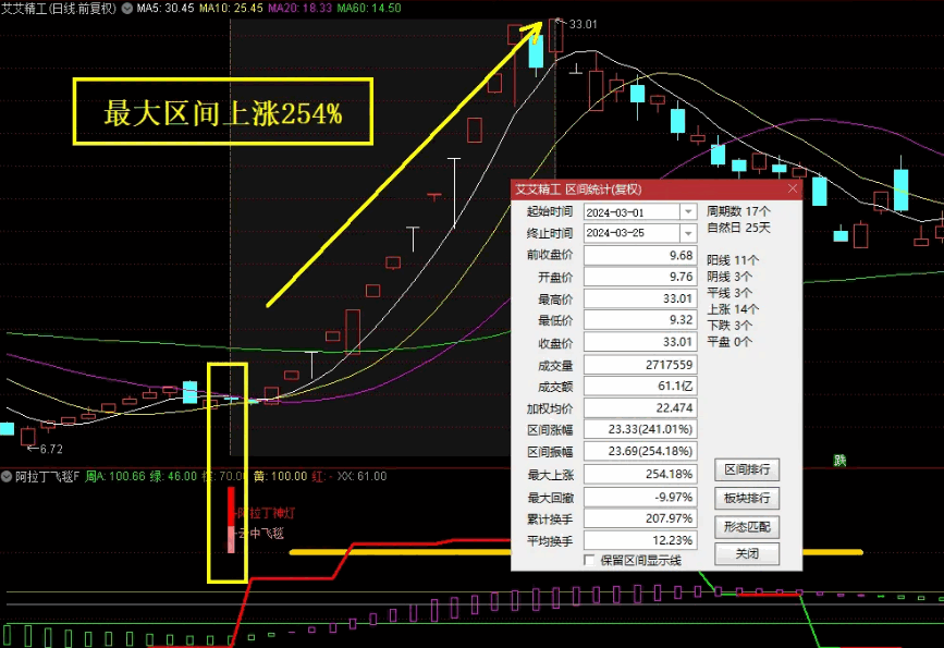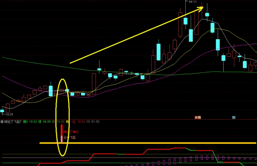 【波段推荐】〖阿拉丁飞天魔毯〗副图/选股指标 适用于波段 信号适中 通达信 源码