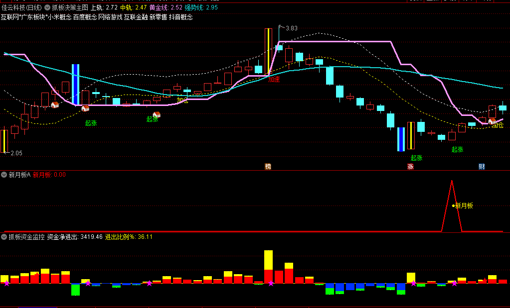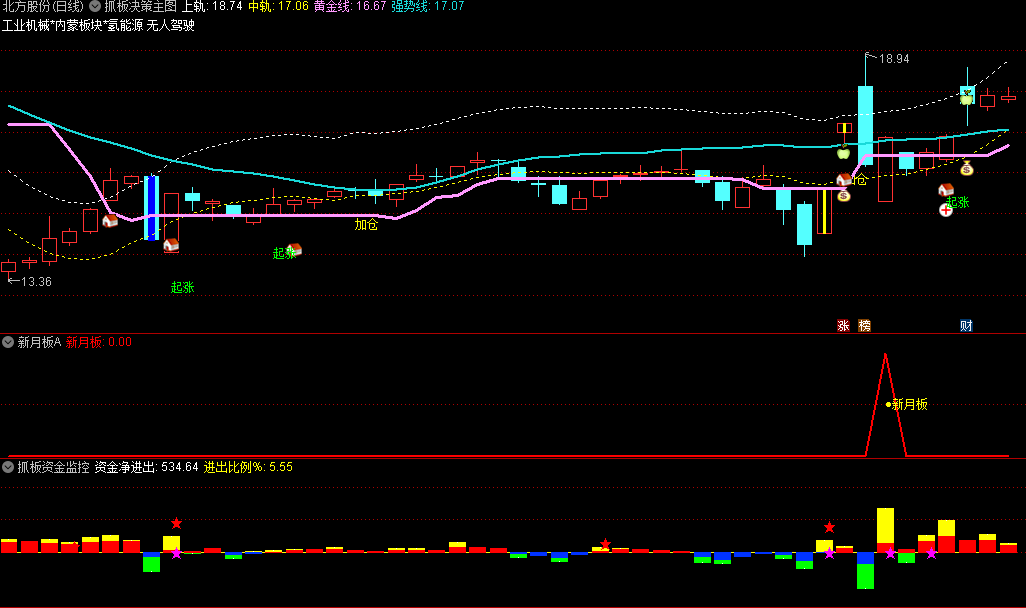 【新月板】指标是对金月龙指标进行优化升级的一款涨停回马枪高成功率的实战抓涨停指标。新月板指标特点:适合超短和短线操作,出信号当日极容易冲上涨停板,超短次日冲高快速获利,短线连板概率较大,能精准捕捉每月连板妖股。基本涨幅3%附近出预警信号,让你完全有机会买入,避免追高的风险!