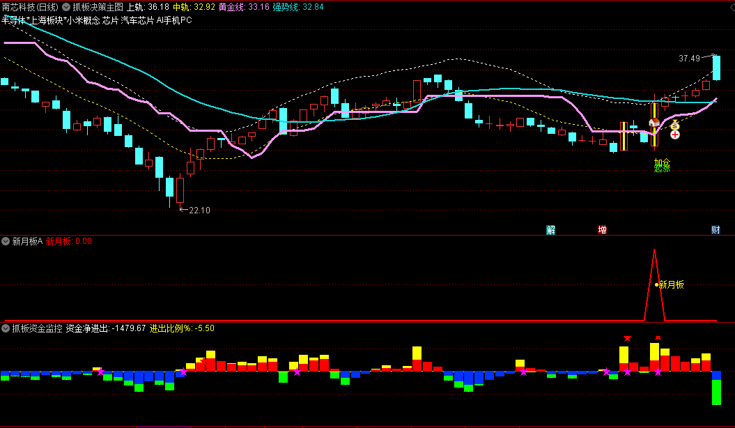 涨停回马枪高成功率抓板——【新月板】主图附图选股以及分时附图指标适合超短次日冲高快速获利电脑通达信使用。